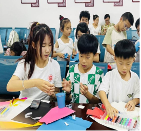 随后,志愿者们组织了一场手工制作活动,让小朋友们亲自动手制作垃圾分类相关的手工作品,教导孩子们利用可回收垃圾进行创意的手工制作,以强调可回收垃圾的重要价值。