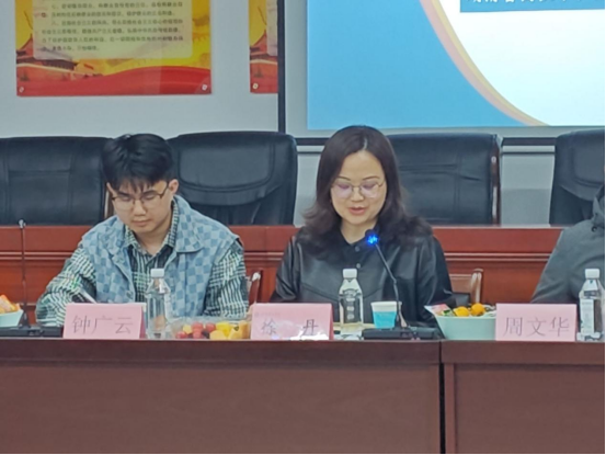 徐丹作总结发言,她强调辅导员是学校教育教学工作中不可或缺的一支重要力量,是学校与学生之间的桥梁和纽带。建议广大辅导员把好“聚焦、培育”两个关键词,在项目研究过程中巧妙做到“小题大做”,多学习、多思考、多吃苦,尽可能地将实践工作进行成果转化;同时感谢在座老师的宝贵建议和意见,后续会对工作室建设进行调优化,以便工作室发挥更大的作用和影响力。