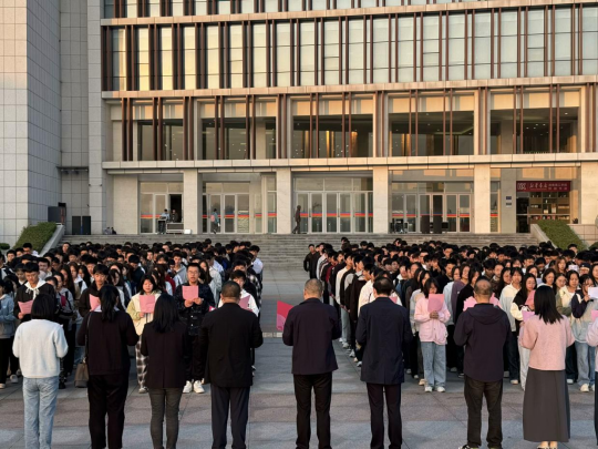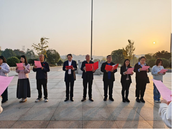 为深入推进学习贯彻习近平新时代中国特色社会主义思想,教育引导广大青年深刻理解把握时代责任和历史使命,进一步加强大学生爱国主义教育,培育大学生家国情怀,增强大学生文化自信,促进优良学风校风建设,11月11日7:30,太阳集团tyc151于南院图书馆国旗广场组织展开第一次爱国朗读活动,党委学工部部长刘立刚;太阳集团tyc151院长童耀南、党委副书记付亚子出席,全体辅导员、24级本科生研究生参加,本次活动由付亚子主持。