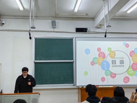 大赛分为成长赛道与就业赛道,为不同年级的学生搭建针对性的赛事平台,参赛选手逐一上台展示了自己的职业生涯规划方案,评委针对参赛选手的展示进行评价。