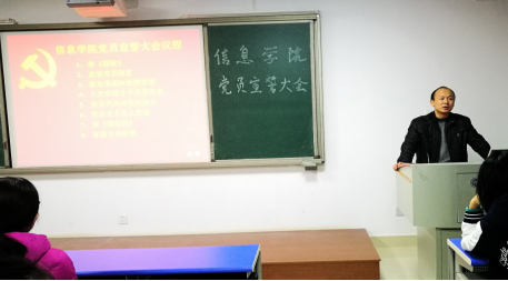 12月20日下午,我院在17栋109召开2016年下学期新党员入党宣誓大会。院党总支书记张泰来、党总支副书记徐丹、组织员徐照清和周煊阳出席,全体正式党员、预备党员及部分入党积极分子参加大会。