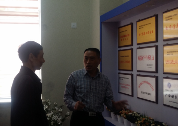2015年4月16日上午,长沙学院电子信息与电气工程系主任刘光灿一行到我院调研电子信息与通信技术国家级实验教学示范中心。学院院长张国云、党总支书记徐四星、副院长丁跃浇、李宏民及相关人员接待了来宾并举行了交流会。