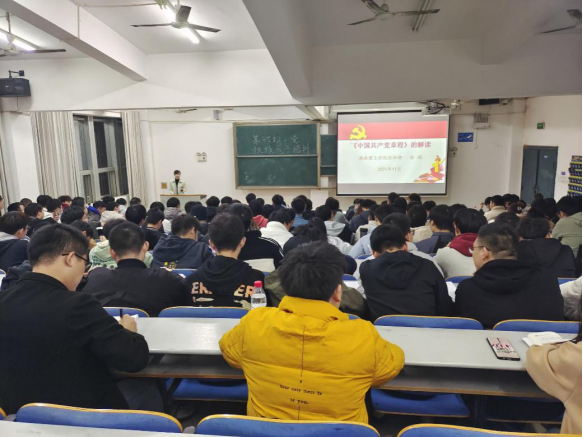 为更好地宣传党的基本理论知识,调动入党积极分子学习党章的积极性,11月21日19:00,太阳集团tyc151开展第45期入党积极分子培训第三讲,由湖南理工学院组织部张娟老师主讲,学生第三党支部书记王学鹏主持。