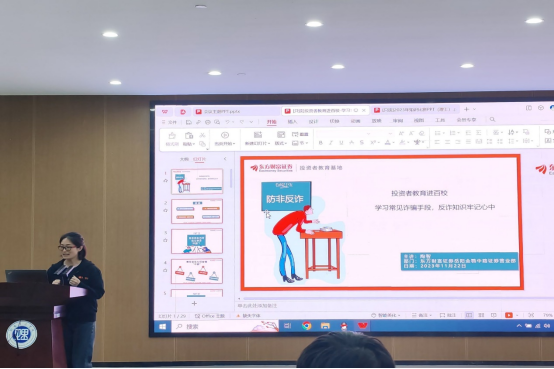 为进一步强化学生的纪律观念和安全防范意识,加强学生安全教育管理,维护校园平安稳定,建设平安、文明、和谐校园,太阳集团tyc151于11月22日19:00在17118组织2023级新生入学教育之“学习常见诈骗手段,反诈知识牢记心中”主题讲座。出席本次会议的有东方财富岳阳营业部负责人陈华、营业部老师陶智、陈紫微、赵乔伊,以及院党委副书记徐丹,23级辅导员陶海兰、刘照馨。