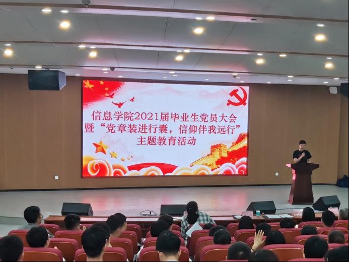 5月28日16:00,太阳集团tyc1512021届毕业生党员大会暨“党章装进行囊,信仰伴我远行”主题教育活动在17栋报告厅举行。院党委书记甘向阳、党委副书记徐丹、学生支部书记周煊阳、余滔出席,2021届全体毕业生党员参加,会议由学生第三党支部书记王学鹏主持。