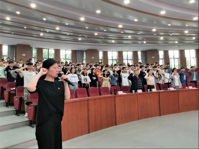 全体毕业生党员在激昂的国歌歌声中肃立合唱国歌,接下来由周煊阳带领大家重温入党誓词。优秀毕业生党员代表王逸飞发言时说:“一名党员就是一面旗帜,要勇于发挥党员的先锋模范作用,积极带动身边的人一起为祖国的未来而奋斗。”